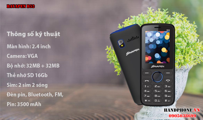 Bavapen B52 là model mới nhất vừa được giới thiệu và phân phối chính hãng tại Việt Nam trong tháng 12/2018. Đây là phân khúc giá rẻ pin bền của dòng điện thoại tính năng cơ bản.