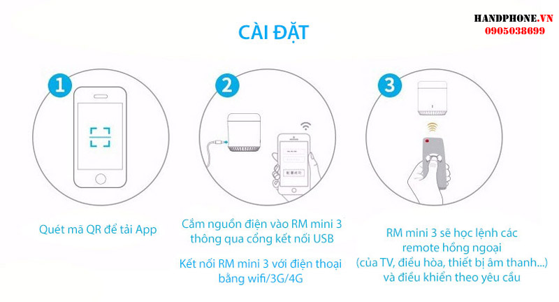 - Để RM Mini 3 hoạt động, bạn chỉ cần tải APP E-control về điện thoại, sau đó kết nối điện thoại với RM Mini 3 thông qua wifi/3G/4G, RM Mini 3 sẽ học lệnh remote hồng ngoại và điều khiển các thiết bị theo yêu cầu của bạn. RM Mini 3 hỗ trợ hệ điều hành iOS 7 và Android 4 trở lên.