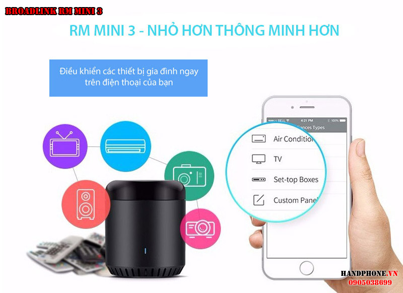 Broadlink RM Mini 3 có khả năng điều khiển mọi thiết bị trong gia đình bạn, với khả năng học hỏi từ các remote hồng ngoại của TV, điều hòa, set-top box, HD player, quạt v.v...