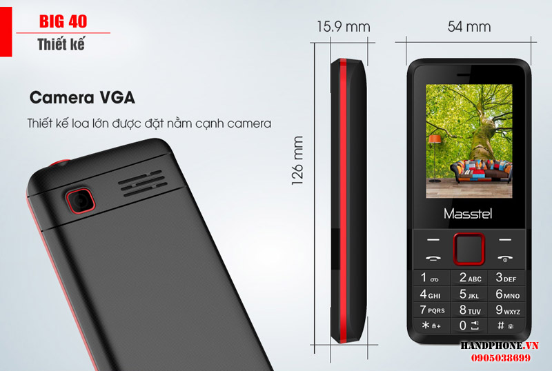 Masstel Big 40 Black Red Điện thoại cho người già