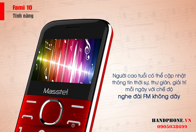 Masstel Fami 10 là model mới nhất dành cho người già được chính thức phân phối tại thị trường Việt Nam vào đầu năm 2017 với phân khúc giá rẻ. Masstel hiện đang là thương hiệu Việt khá lớn trên thị trường di động tại Việt Nam.