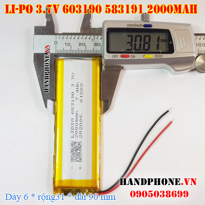 Pin Li-Po 3.7V 2000mAh 603190 583191 (Lithium Polymer)