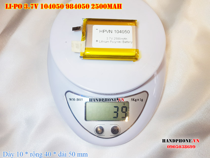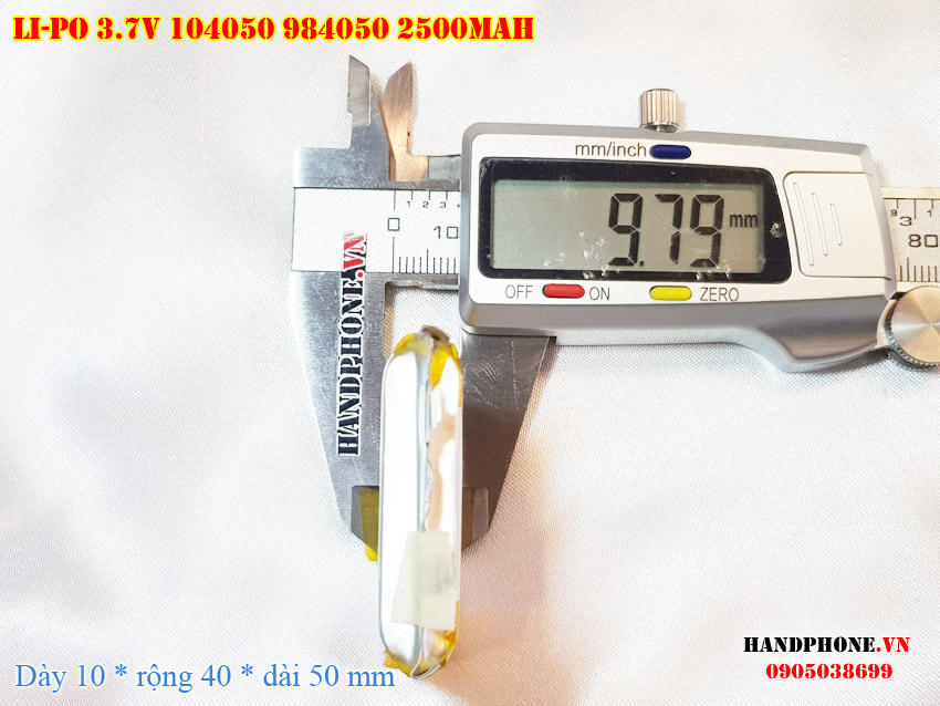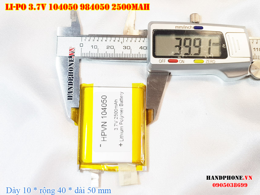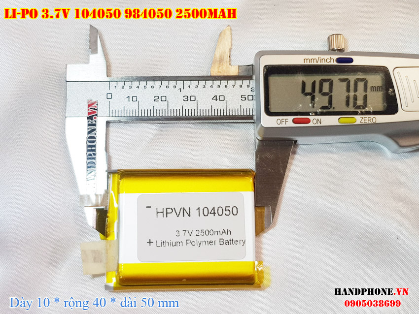 Ảnh chụp thật thực tế đo thông số sản phẩm pin Li-Po 2500mAh 104050 984050 tại Handphone.vn
