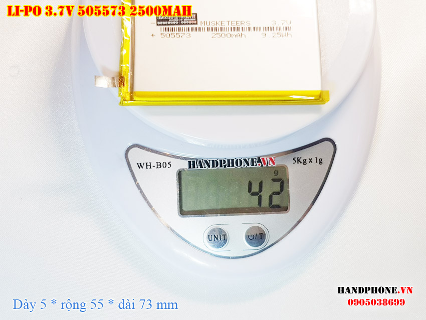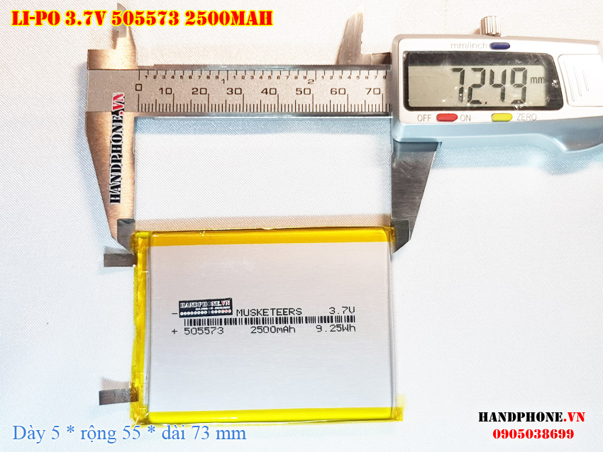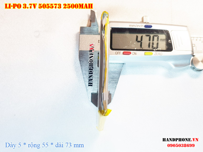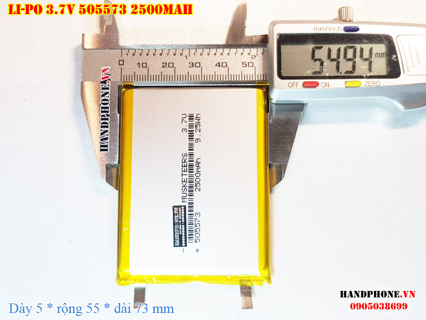Ảnh chụp thật thực tế đo thông số sản phẩm pin Li-Po 2500mAh 505573 tại Handphone.vn