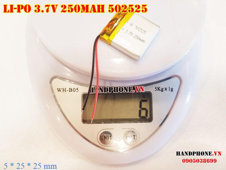 Pin Li-Po 3.7V 250mAh 502525 (Lithium Polymer)