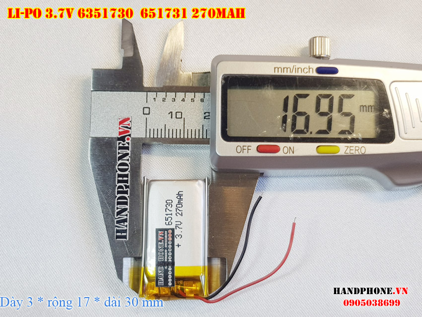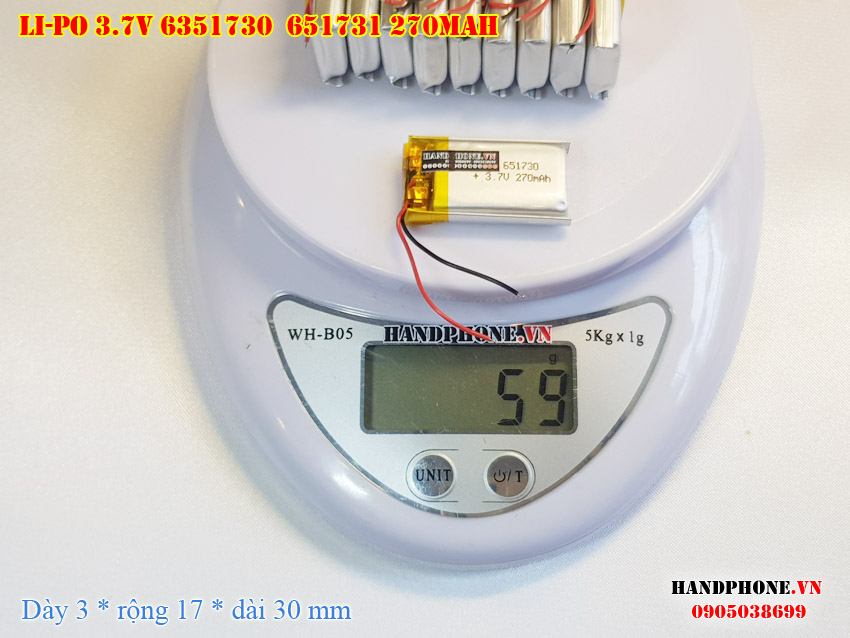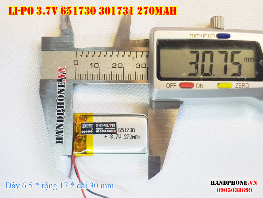 Ảnh chụp thật thực tế đo thông số sản phẩm pin Li-Po 270mAh 651730 651731 tại Handphone.vn