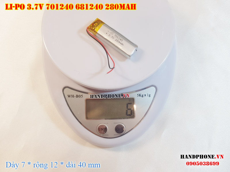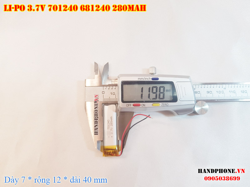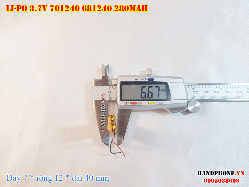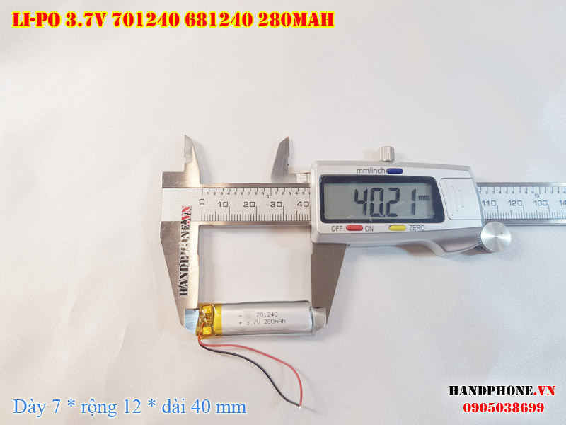 Ảnh chụp thật thực tế đo thông số sản phẩm pin Li-Po 280mAh 701240, 681240 tại Handphone.vn