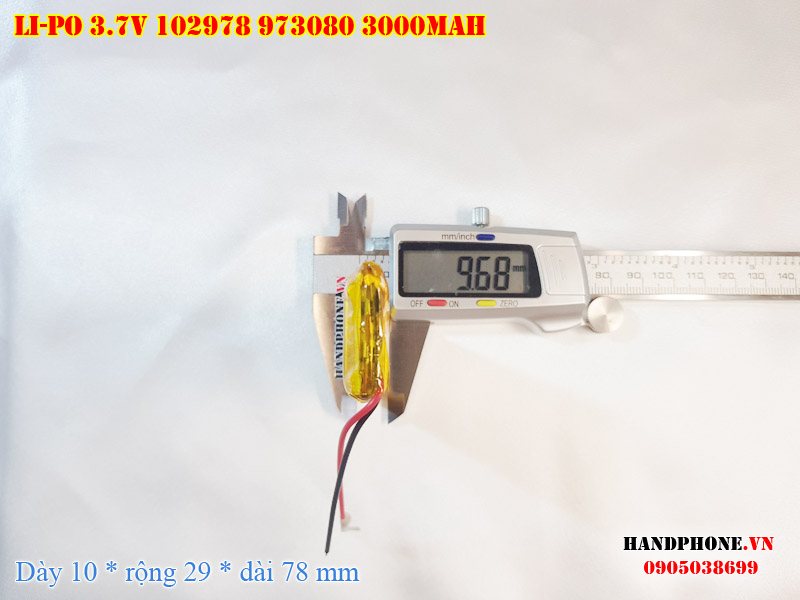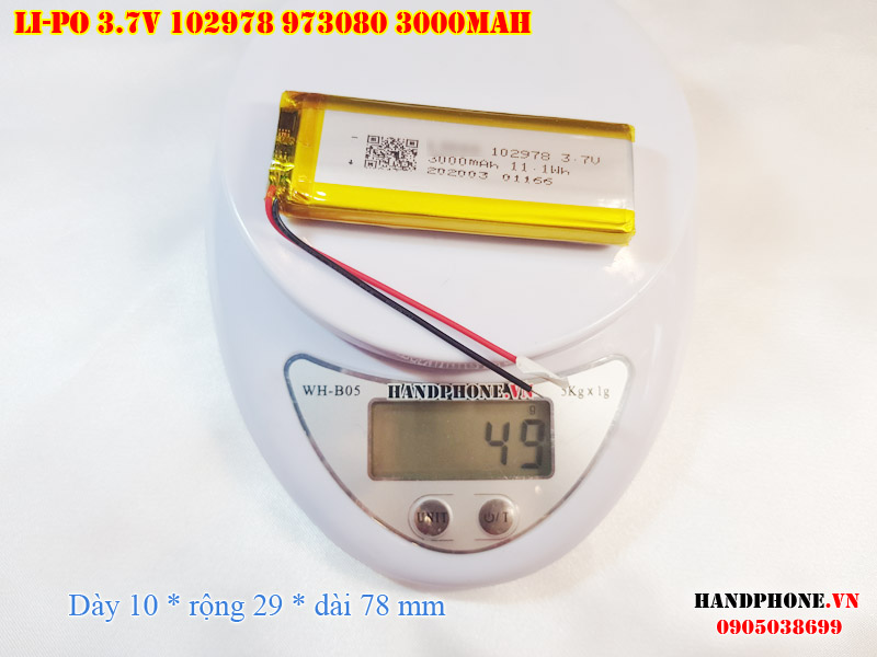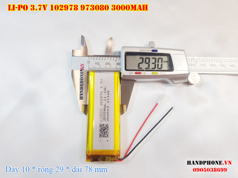 Ảnh chụp thật thực tế đo thông số sản phẩm pin Li-Po 3000mAh 102978 973080 103080 tại Handphone.vn