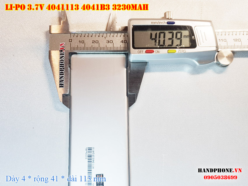 Ảnh chụp thật thực tế đo thông số sản phẩm pin Li-Po 3230mAh 4041113, 4041B3 tại Handphone.vn