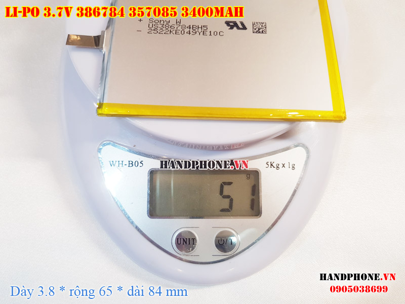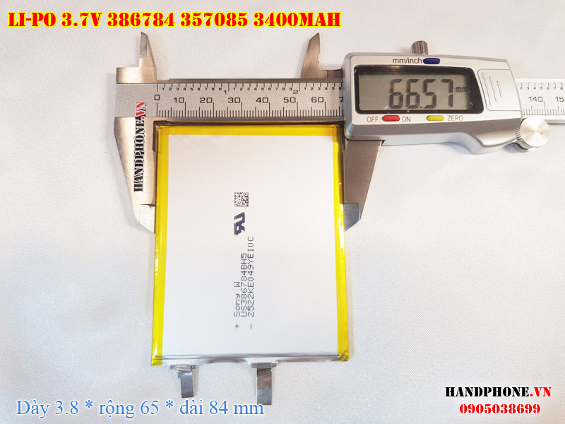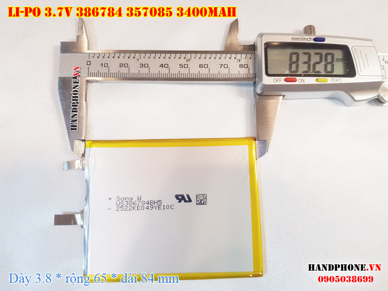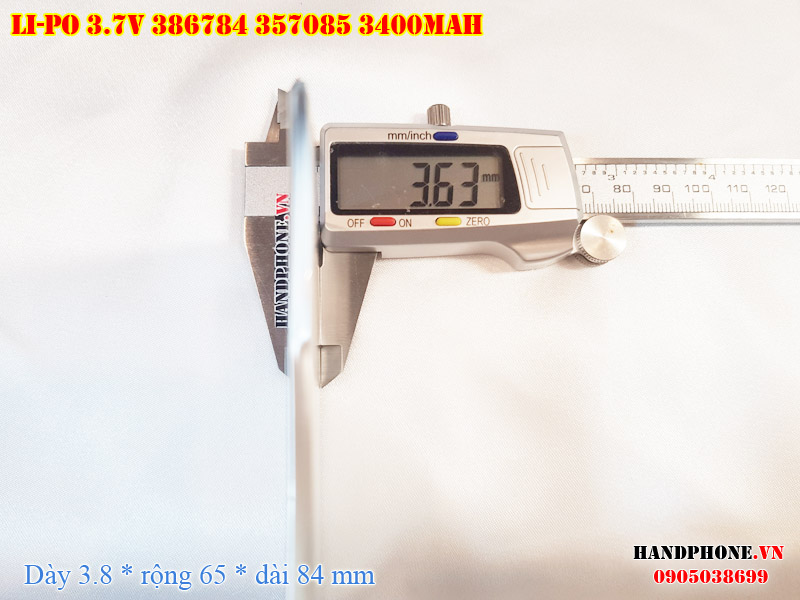 Ảnh chụp thật thực tế đo thông số sản phẩm pin Li-Po 3400mAh 386784 387085 tại Handphone.vn