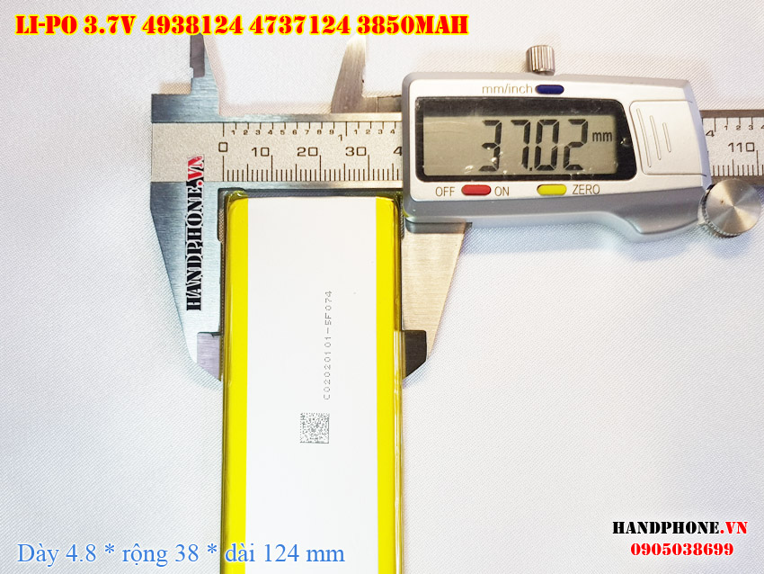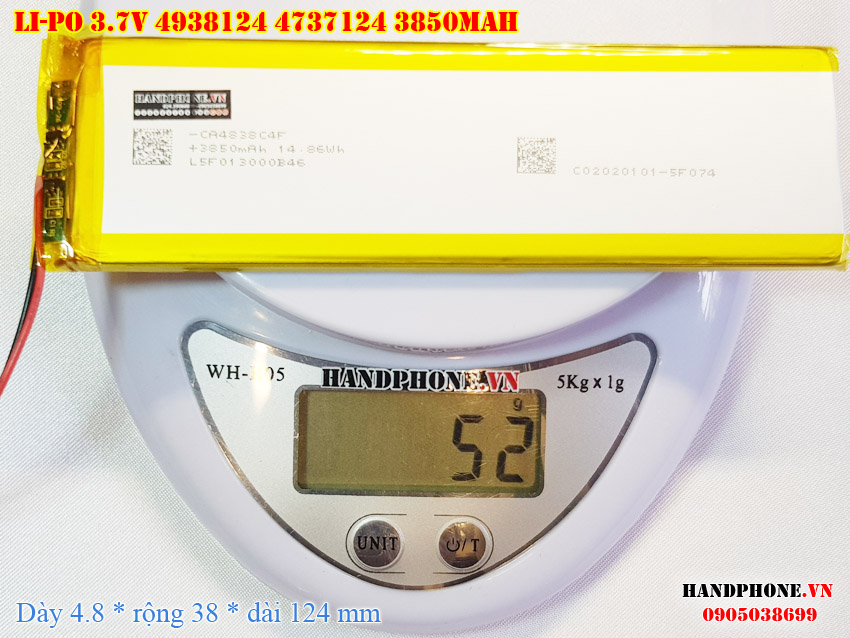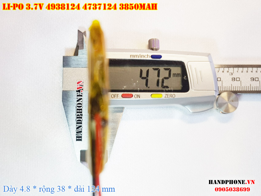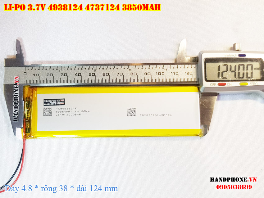 Ảnh chụp thật thực tế đo thông số sản phẩm pin Li-Po 3850mAh 4838124 4737124 loại 2 dây và 3 dây tại Handphone.vn
