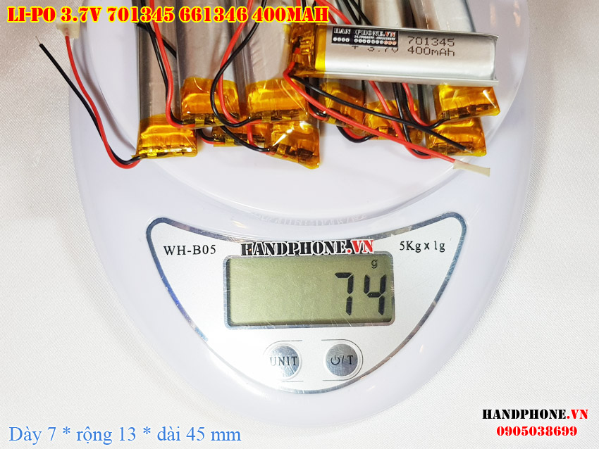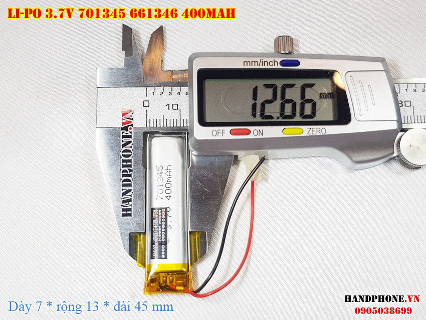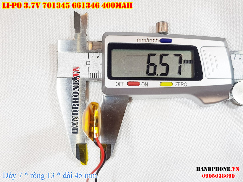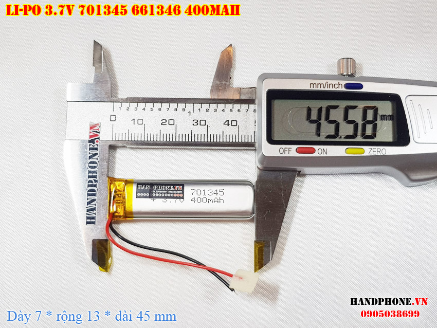 Ảnh chụp thật thực tế đo thông số sản phẩm pin Li-Po 400mAh 701345 661345 tại Handphone.vn