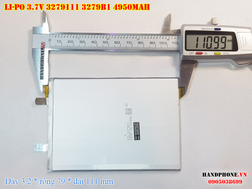 Ảnh chụp thật thực tế đo thông số sản phẩm pin Li-Po 4950mAh 3279111 3279B1 tại Handphone.vn