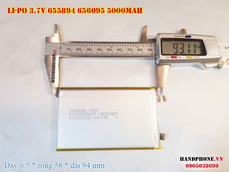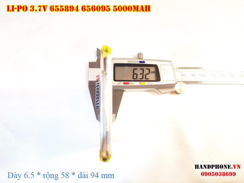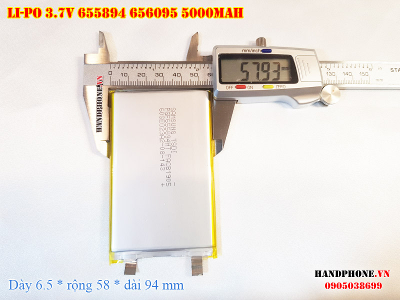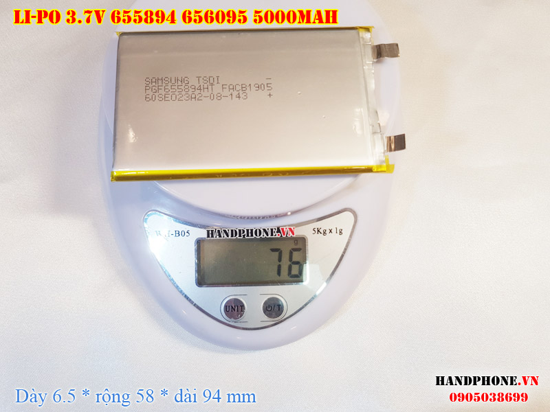 Ảnh chụp thật thực tế đo thông số sản phẩm pin Li-Po 5000mAh 655894 656095 tại Handphone.vn