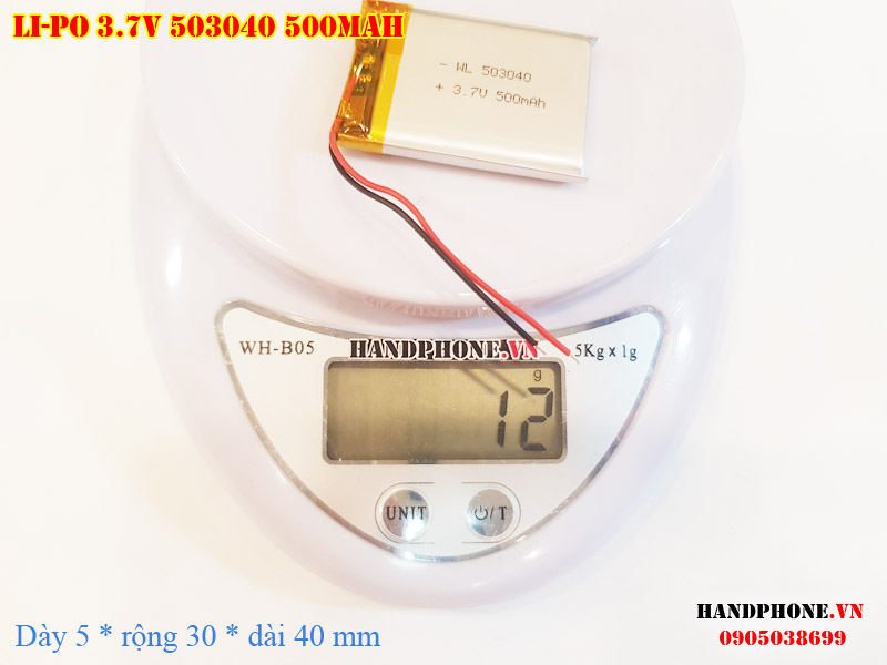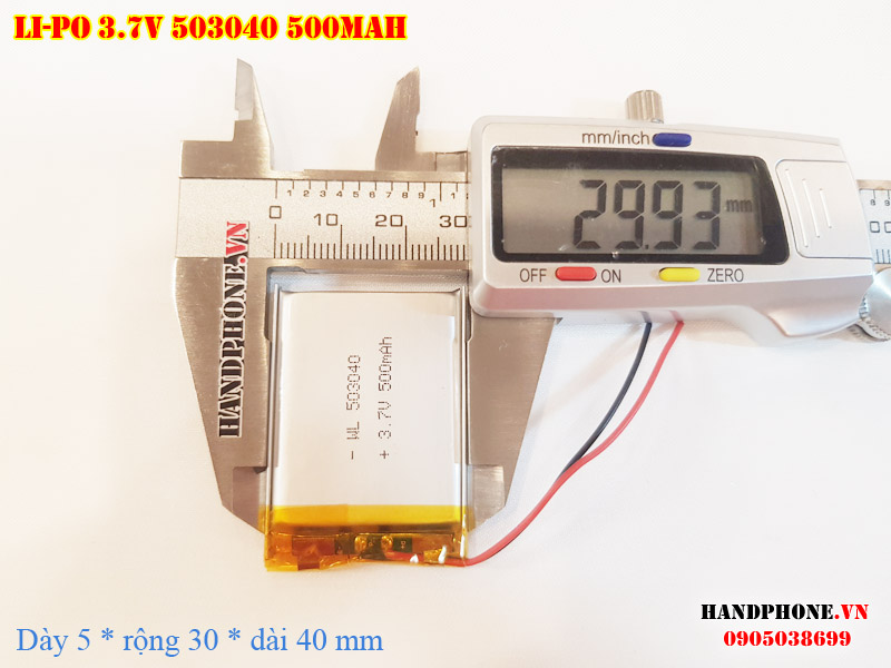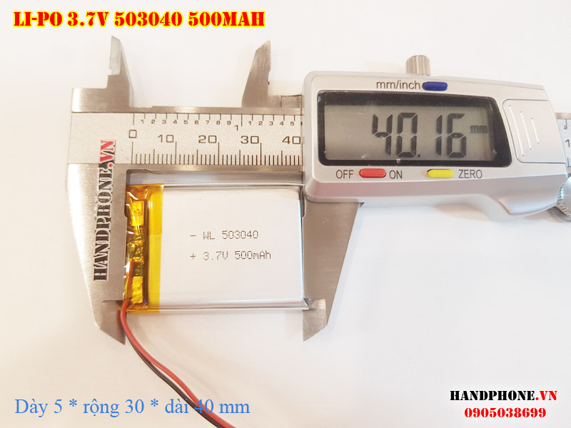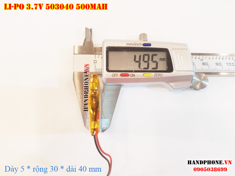 Ảnh chụp thật thực tế đo thông số sản phẩm pin Li-Po 500mAh 503040 tại Handphone.vn