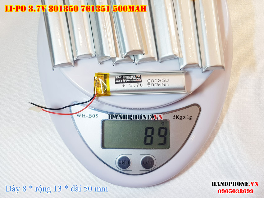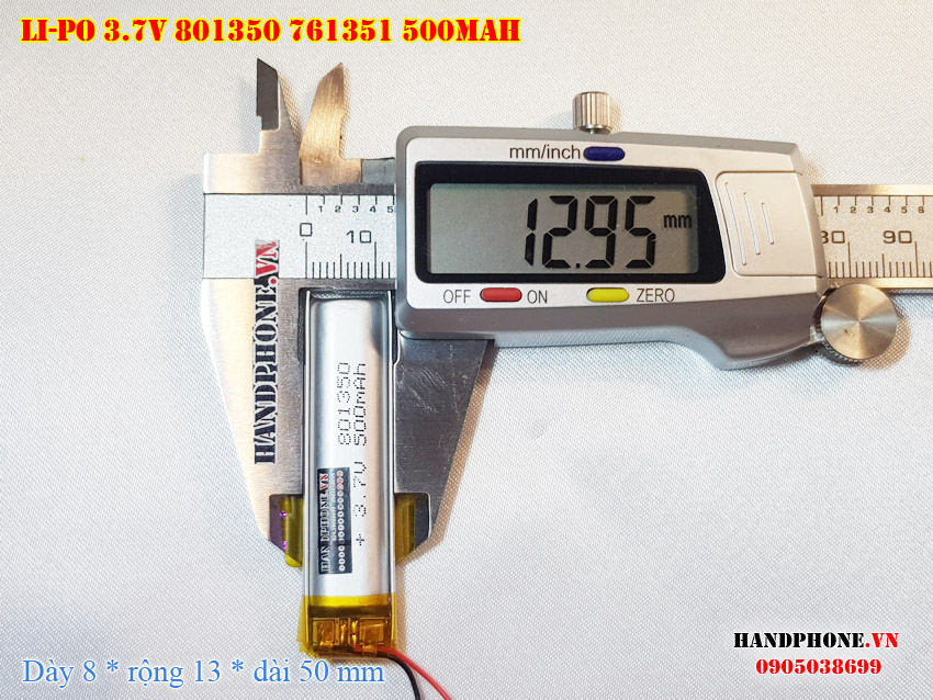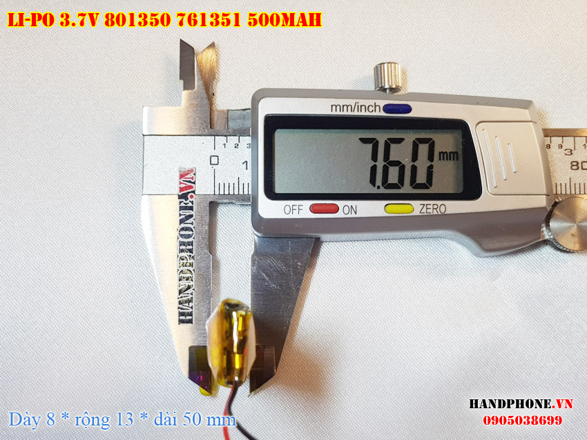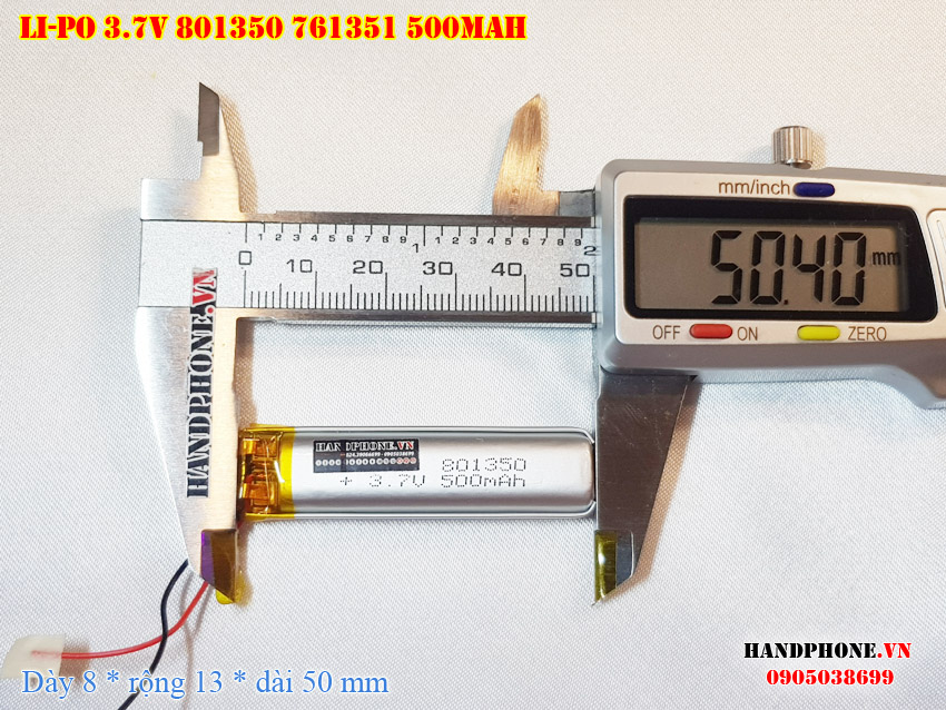 Ảnh chụp thật thực tế đo thông số sản phẩm pin Li-Po 500mAh 8801350, 761351 tại Handphone.vn