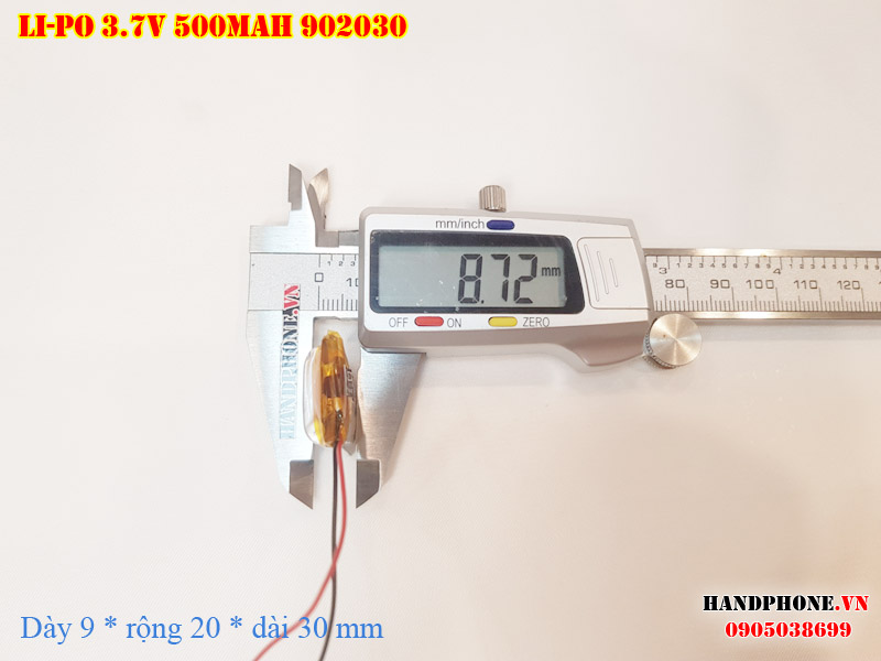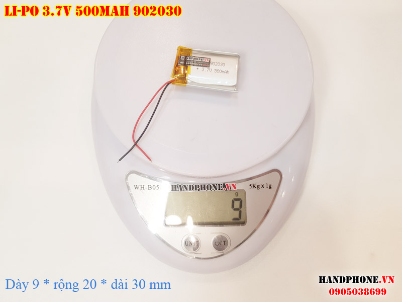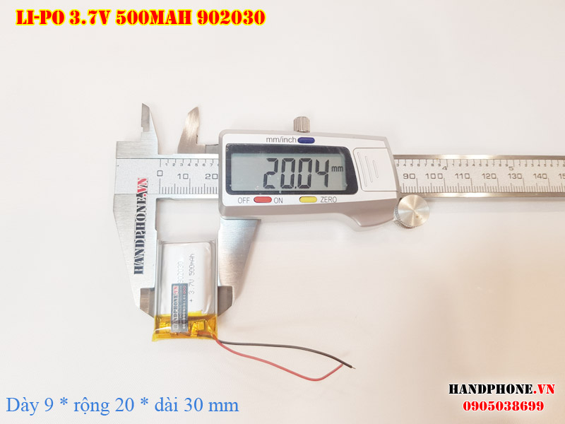 Ảnh chụp thật thực tế đo thông số sản phẩm pin Li-Po 500mAh 902030 tại Handphone.vn