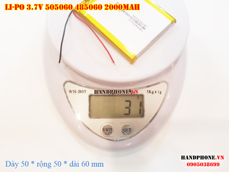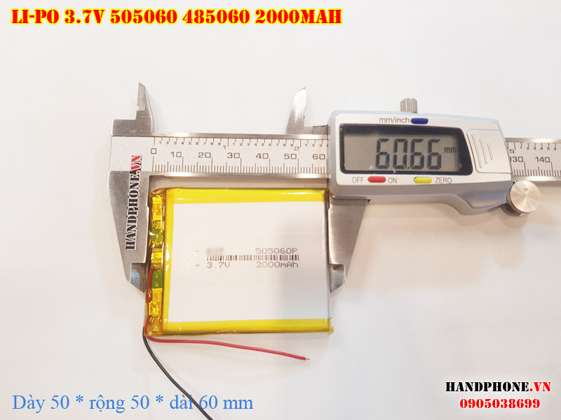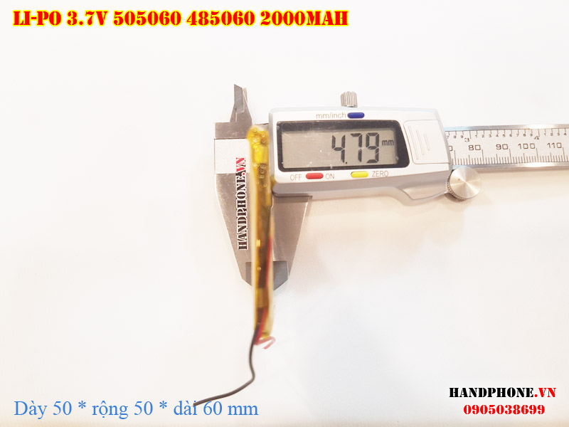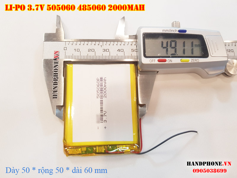 Ảnh chụp thật thực tế đo thông số sản phẩm pin Li-Po 2000mAh 505060, 485060 tại Handphone.vn