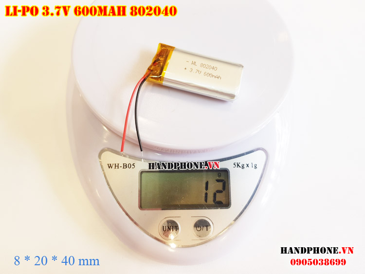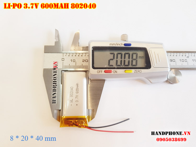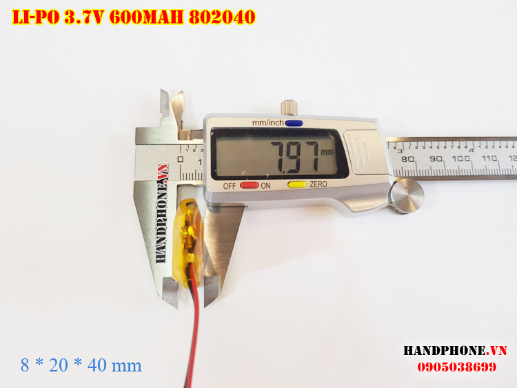 Ảnh chụp thật thực tế đo thông số sản phẩm pin Li-Po 600mAh 802040 tại Handphone.vn