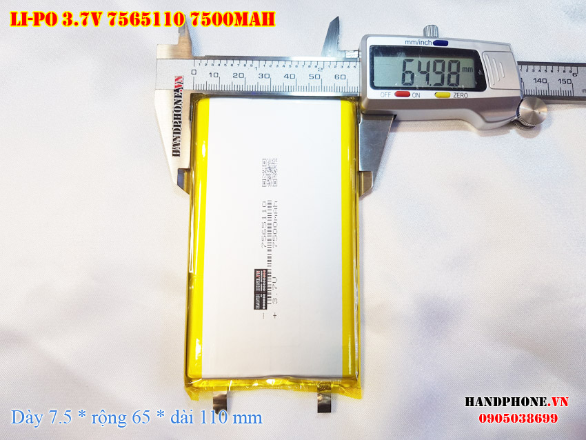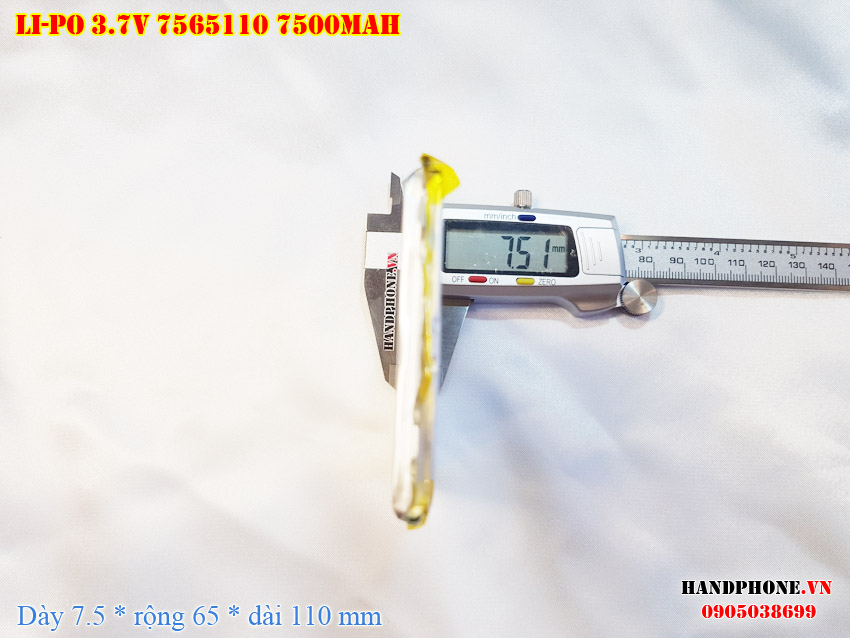 Ảnh chụp thật thực tế đo thông số sản phẩm pin Li-Po 7500mAh 7565110 tại Handphone.vn