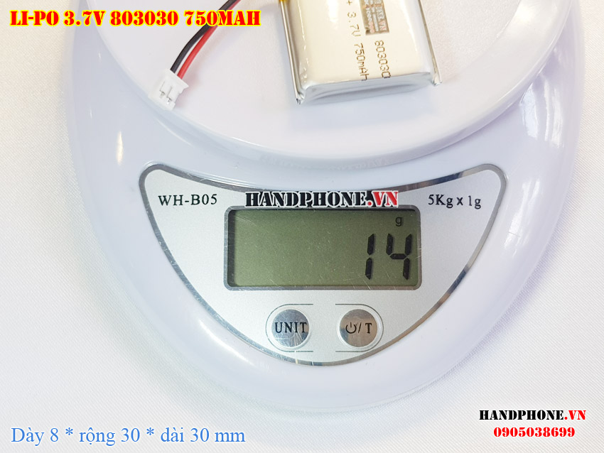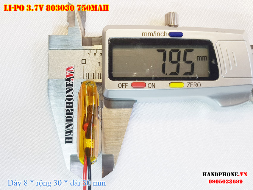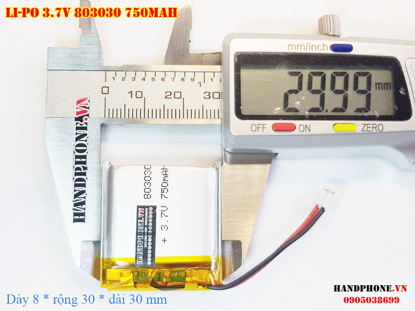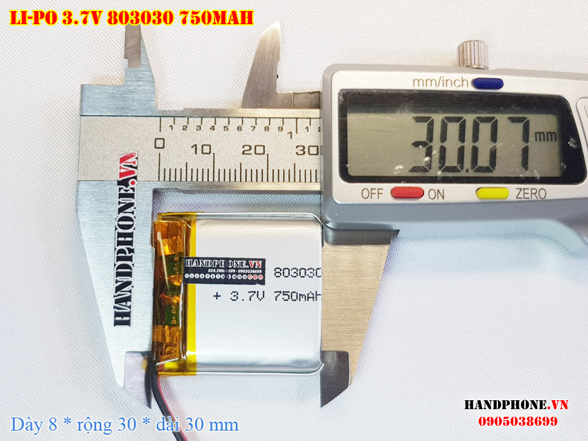 Ảnh chụp thật thực tế đo thông số sản phẩm pin Li-Po 750mAh 803030 tại Handphone.vn