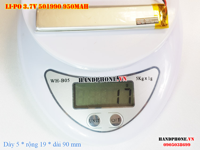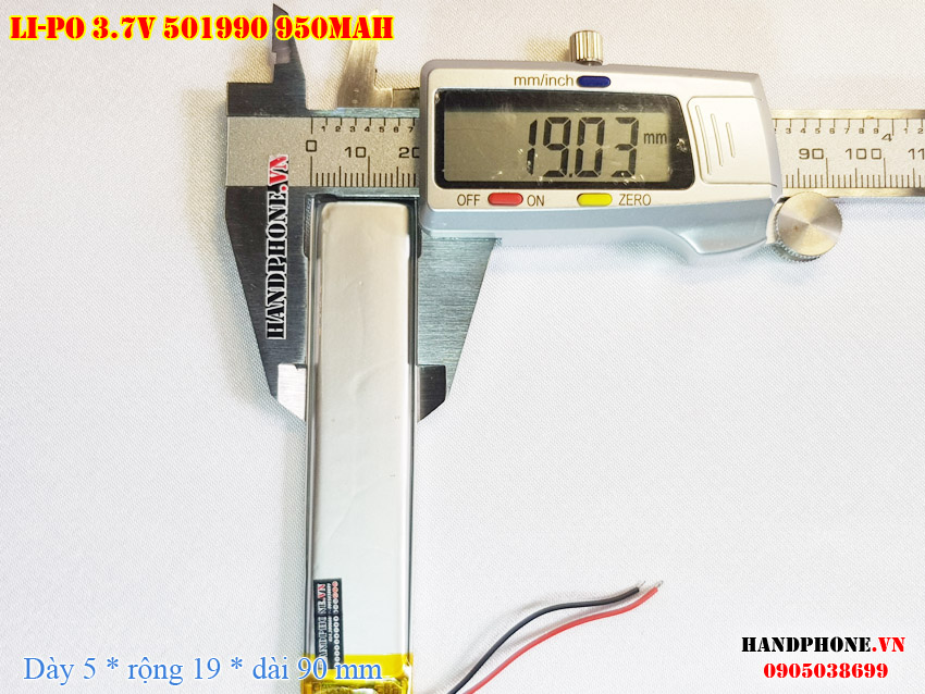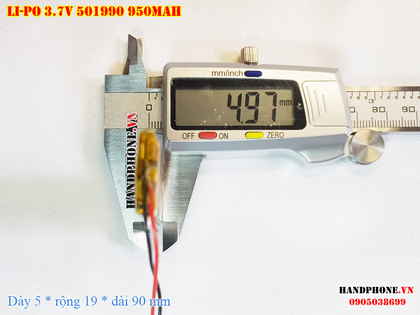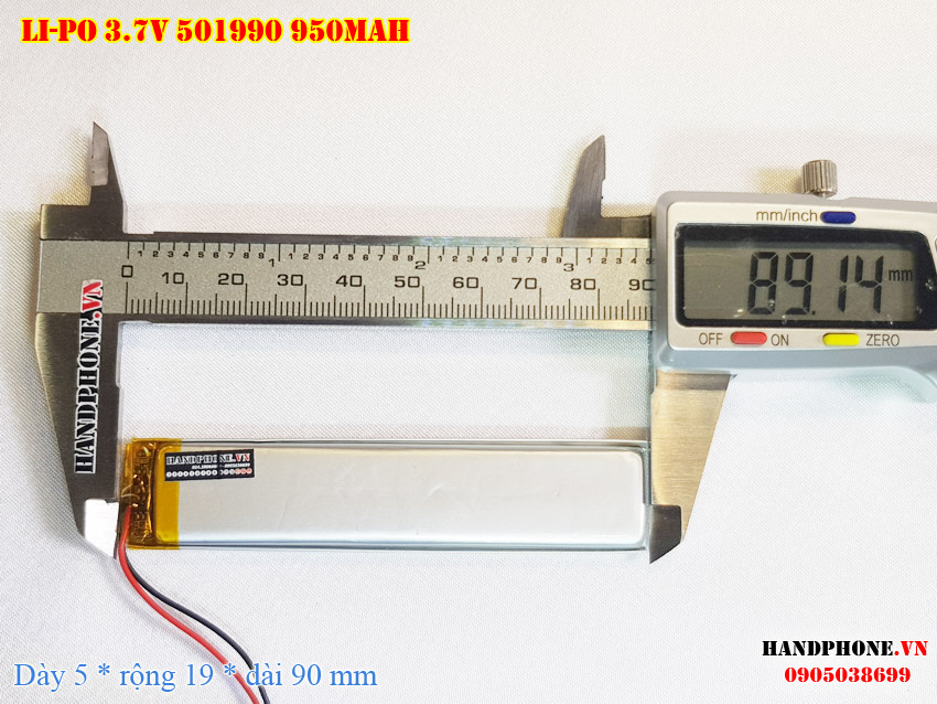 Ảnh chụp thật thực tế đo thông số sản phẩm pin 501990, 502090 950mAH  tại Handphone.vn