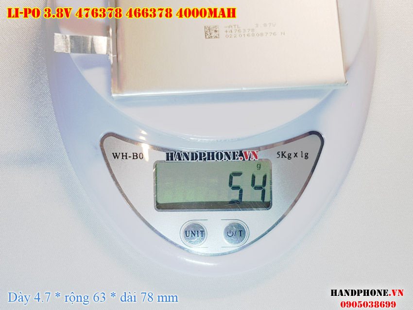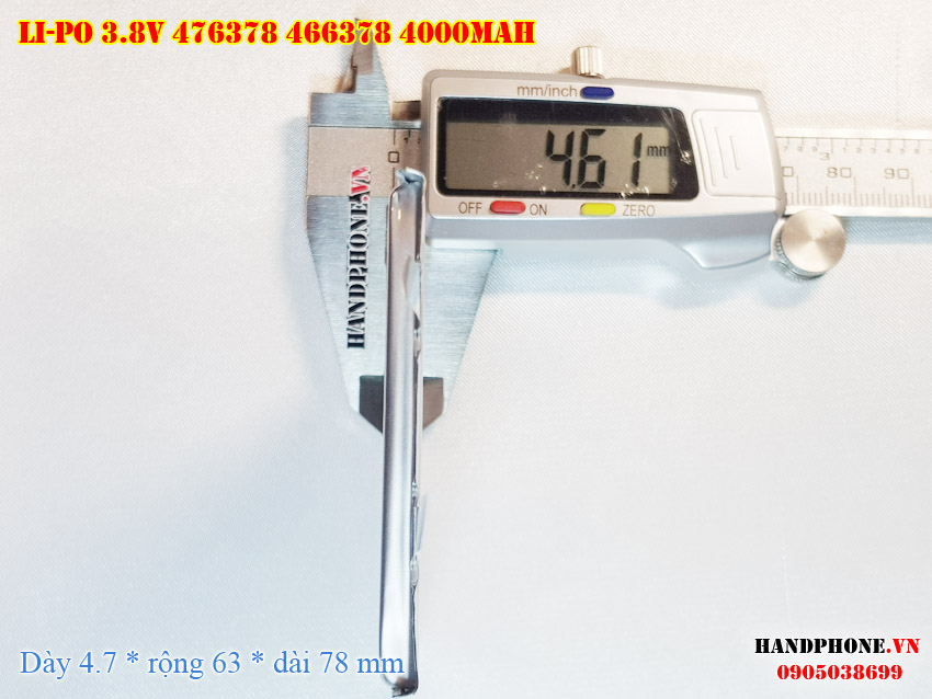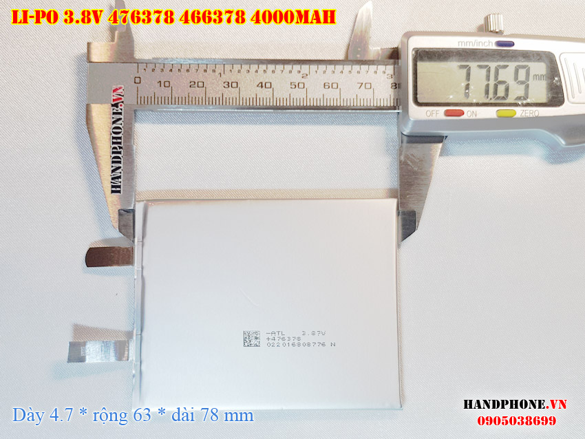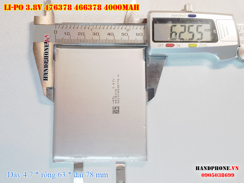Ảnh chụp thật thực tế đo thông số sản phẩm pin Li-Po 4000mAh 476378 466378 tại Handphone.vn