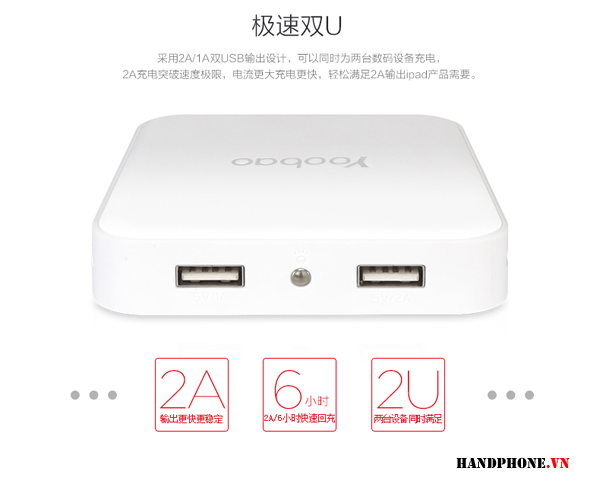 2 USB đầu ra 5V- 1A / 5V - 2A