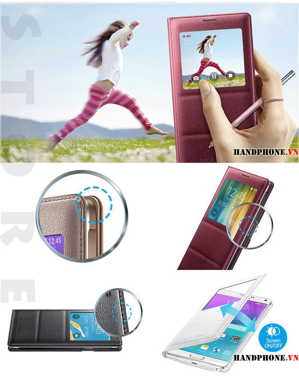 - Chức năng khi dùng bao da Galaxy Note 4 tự động tắt mở màn hình, tiết kiệm năng lượng tối đa